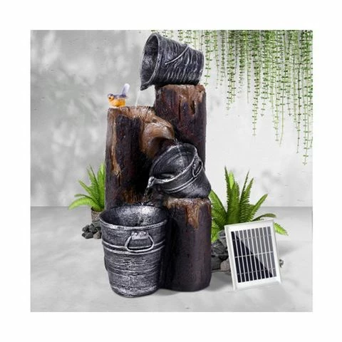 Add a conversation piece to your garden our Gardeon 3-tier Solar Fountain. its novelty sculptural design, the solar fountain certainly deserves a prominent place in your garden landscape. The fountain Features::s three tiers of bucket-shaped bird baths water cascading down all the way.