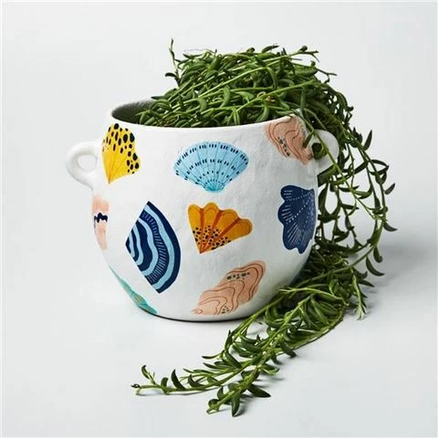 The Kokomo Planter is a large pot designed to deliver impact with its white base and hand painted selection of fish in an array of Jones & Co colours: teal, mustard, light pink and navy.