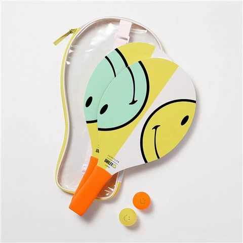 Keep up those positive vibes, no matter how competitive you are when it comes to playing games with Sunnylife’s Beach Bats that are an official `collab’ with the renowned French artist, Smiley®. It’s hard to be cheesed off even when you lose with these bats covered in smiling faces. The design is a modern take on a classic favourite and a coordinated way to play with the matching Smiley face orange and yellow balls. Take a few hits in your backyard, on the beach or in a park. The set is arrayed in a handy zip-up travel case, so you can be sure to pack them in your holiday suitcase. It’s game, set and style smash.