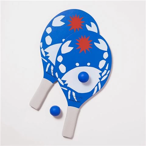 Up your ante when it comes to beach games with this Limited Edition Sunnylife x Daimon Downey Whack Crab Beach Bats `collab’. Certainly it’s a standout in blue with white crabs reaching for the sun. The design is a modern take on a classic favourite and a coordinated way to play with the matching blue balls. Take a few hits in your backyard, on the beach or in a park. The set is arrayed in a handy zip-up travel case, so you can be sure to pack them in your holiday suitcase. It’s game, set and style smash.