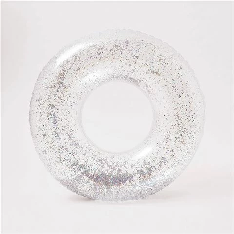 Enjoy a lazy day in the pool with this Glitter Pool Ring. It shimmers and shines ever so bright with its silver holographic star shaped confetti filling. An iconic and chic pool accessory for a summer of style.