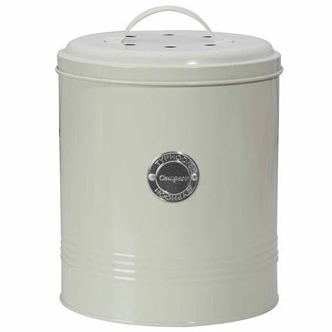 The Typhoon Living Compost Caddy Cream 2.5L is made from tin and comes with a removable bucket made from durable materials. Featuring a lid, and also two carbon filters to keep contents fresh, this caddy is ideal for storing compostable kitchen waste.