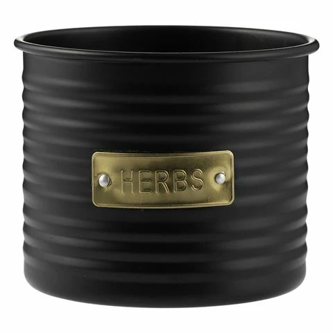 Typhoon’s Otto Herb Planter Black is crafted from high quality coated steel, and has a black colour finish. This herb planter fits most ready grown herbs, or you can even grow your own. Featuring a small gold-toned plate engraved with the word Herbs, this herb planter is simply divine!