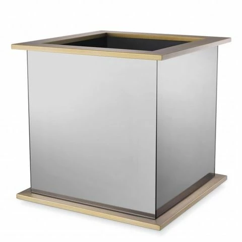 This modern planter box has smoked glass mirrors on the sides and a base and rim with a brushed brass finish. (A perfect planter box for your Christmas tree!)