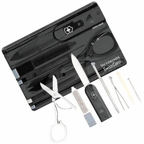The latest innovation from Victorinox is the SwissCard. Slip a slim, light SwissCard into your wallet, purse or pocket and you’ll always have a versatile and durable collection of tools at your fingertips!