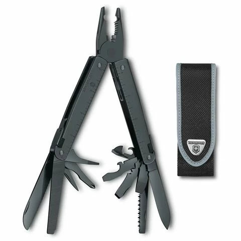 The Swiss Tool BS is about extremes. Extremely handy, functional and compact, the Swiss Tool BS is a complete toolbox in a single tool – but one that’s light enough to stow and carry with you wherever your day takes you. Suited with a durable pouch, this incarnation of a multi-tool features black oxide steel for more than just an elegant blackened finish, as it provides for better protection against corrosion. To every owner the Swiss Tool BS will soon become the tool for which they find a million uses – at home, at work and outdoors.